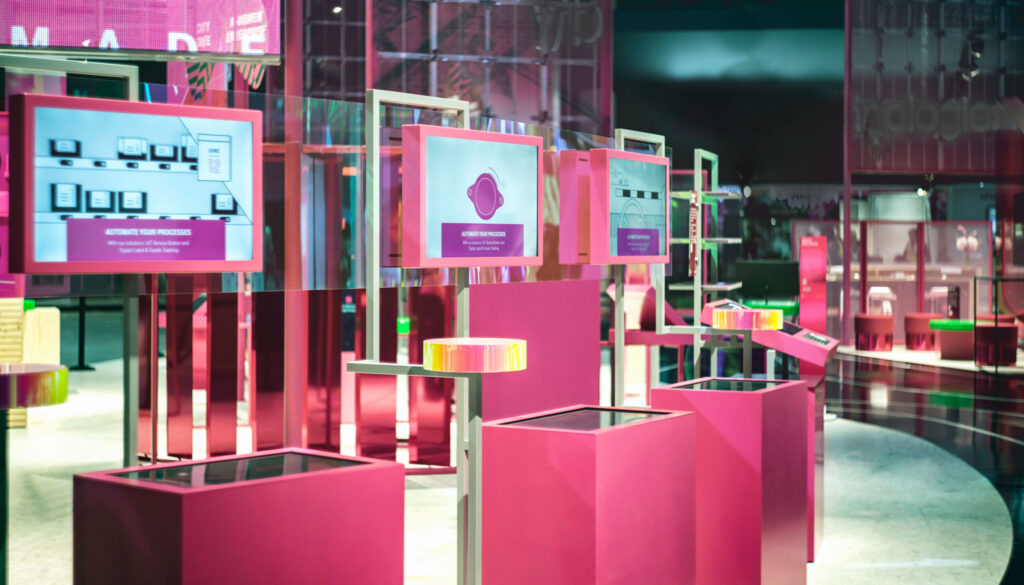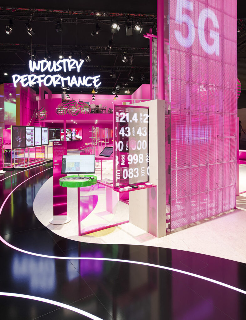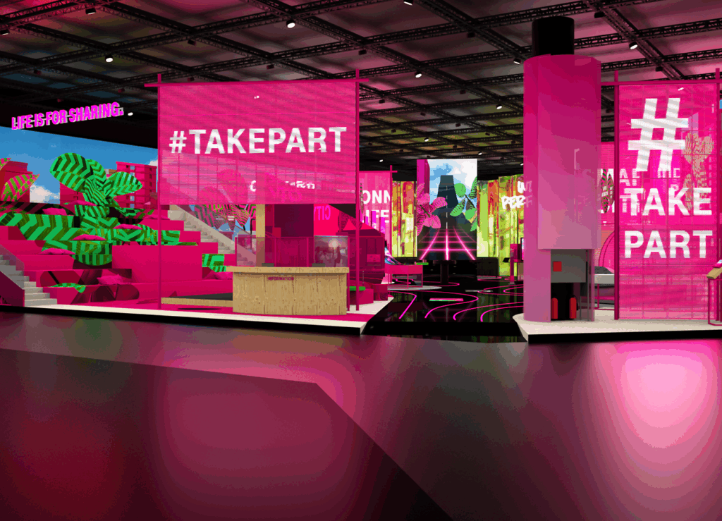 Der Stand der Telekom beim MWC lud die Messebesucher zum Erleben und Mitmachen ein. Mit mehr als 2.400 Ausstellern aus aller Welt ist der MWC in Barcelona die wichtigste internationale Messe der Telekommunikationsbranche. Auch in diesem Jahr kamen weit über 100.000 Besucher nach Barcelona, um die digitalen Trends und Technologien der Zukunft zu erleben.
