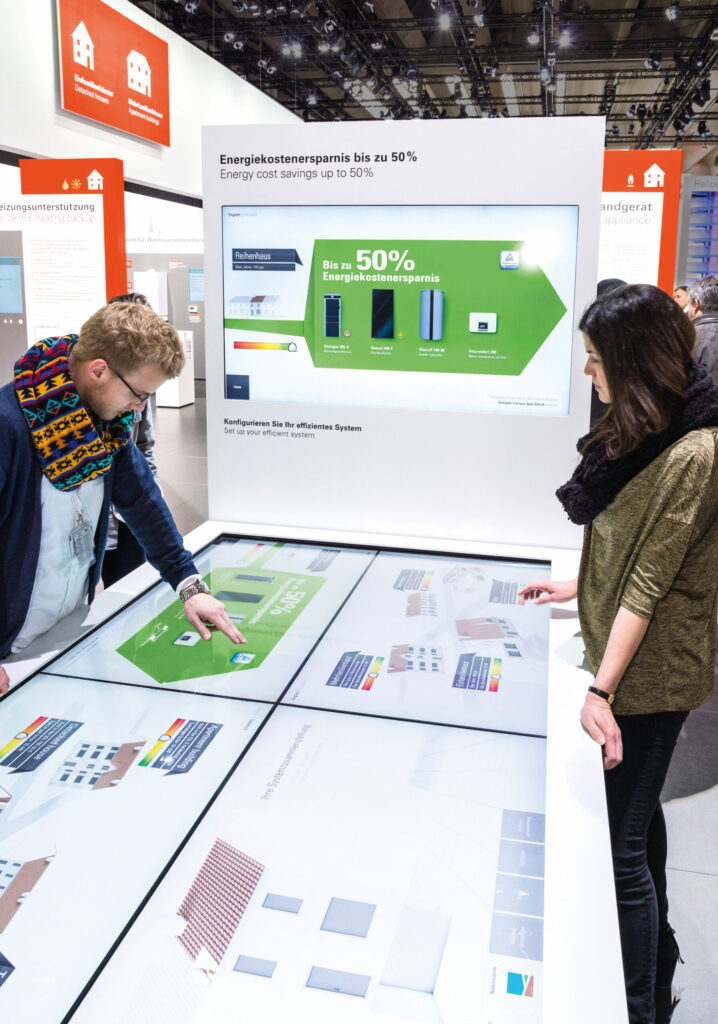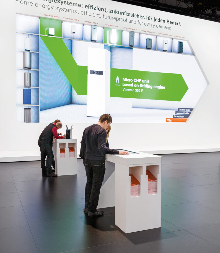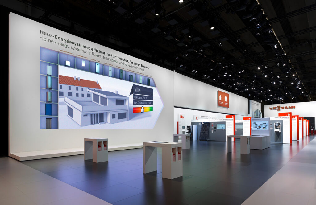 Das Viessmann Markenversprechen „climate of innovation“ war auch Messemotto des Unternehmens zur ISH Energy 2013, der Leitmesse für Gebäude-, Energie und Klimatechnik, die Mitte März in Frankfurt stattfand. Der Messestand des Unternehmens war in zwei große Bereiche aufgeteilt: Im ersten wurden hocheffiziente Systemlösungen für Wärmeerzeuger in Ein- und Mehrfamilienhäuser präsentiert. Der zweite Bereich legte den Schwerpunkt auf Anlagentechnik für Industrie, Gewerbe und Kommunen.